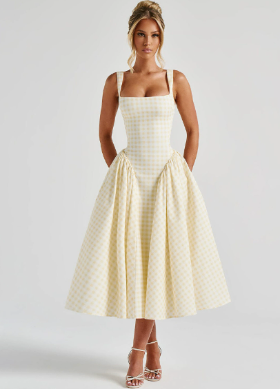 Amalthea – Rochia maxi plisată cu guler halter elegant