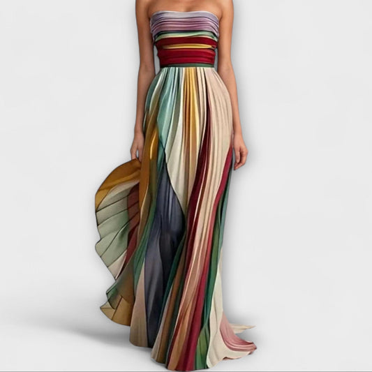 Bethania - Rochie maxi elegantă cu dungi pe un umăr